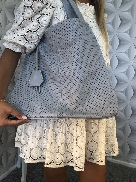 Rewelacyjna torebka z najwyższej jakości skóry naturalnej w błękitnym kolorze, z trzema kieszonkami w środku. Zamykana na zamek. Nienaganne szycie i łączenia sprawiają, że torebka wygląda perfekcyjnie. Idealna do codziennych stylizacji.