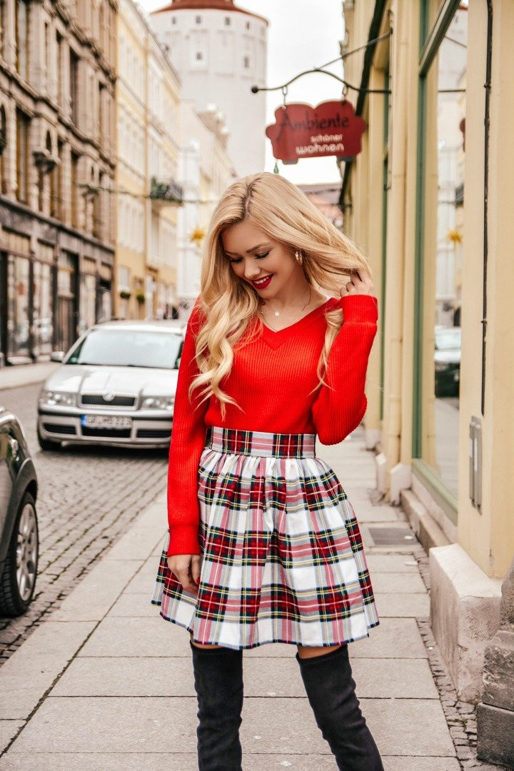 Gładki, klasyczny sweter o prostym kroju. Górę swetra wieńczy dekolt w szpic. Propozycja w niezwykle oryginalnym kolorze kubańskiej czerwieni, doskonale sprawdzi się zarówno w pracy, na towarzyskim spotkaniu, jak i na co dzień. Wykonany został z wysokiej jakości materiału, jest miękki w dotyku, elastyczny - świetnie układa się na sylwetce. SKŁAD: 75 % AKRYL, 15% NYLON, 10% WEŁNA WYMIARY: Długość rękawa- 61 cm Długość całkowita -62 cm Obwód w biuście- 46 cm