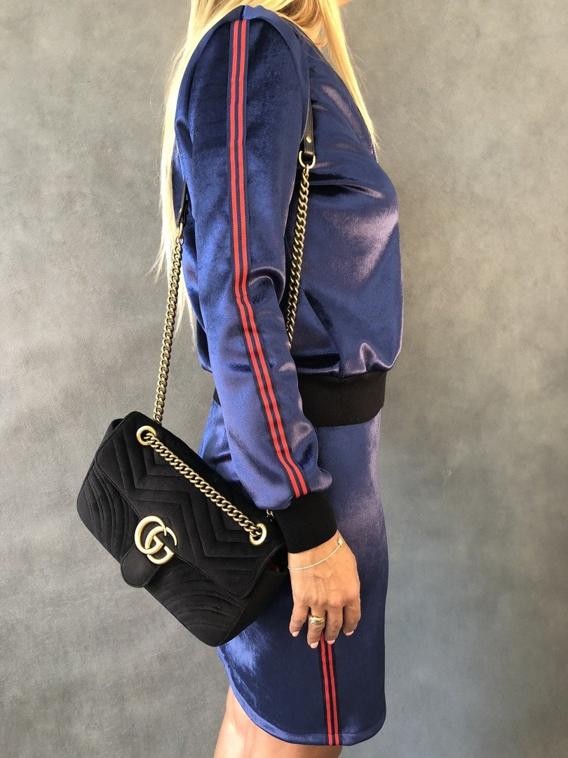 EMMA PLUM granatowy komplet składający się z kurtki-bomberki i spódniczki, bardzo przyjemny w dotyku z najwyższej jakości materiału