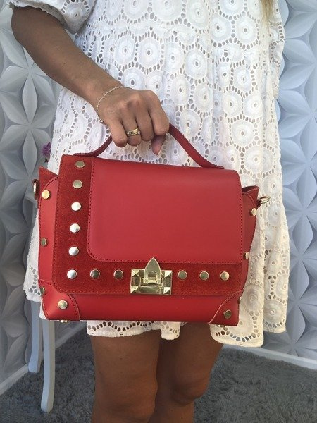 Przepiękna skórzana torebka, idealnie uzupełniająca garderobę każdej kobiety. Nienaganne szycie i łączenia sprawiają, że torebka wygląda perfekcyjnie. Wyprodukowana z najlepszej gatunkowo skóry. Doskonale wpisuje się w najnowsze trendy modowe.